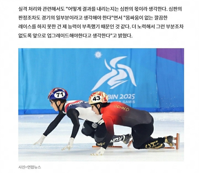 林孝埈成为了比赛的焦点东谈主物,诚然此前他曾是韩国短谈速滑的代表性东谈主物,然则如今各为其主,韩国队连我方东谈主齐爱下死手,难谈还会顾及之前的队友情吗?亚冬会短谈速滑须眉5000米起劲比赛中,林孝埈在终末一圈跌倒,赛后裁判认定韩国选手朴知元的手臂抵牾犯规,名依次二的韩国被取消成绩,中国队获铜牌。